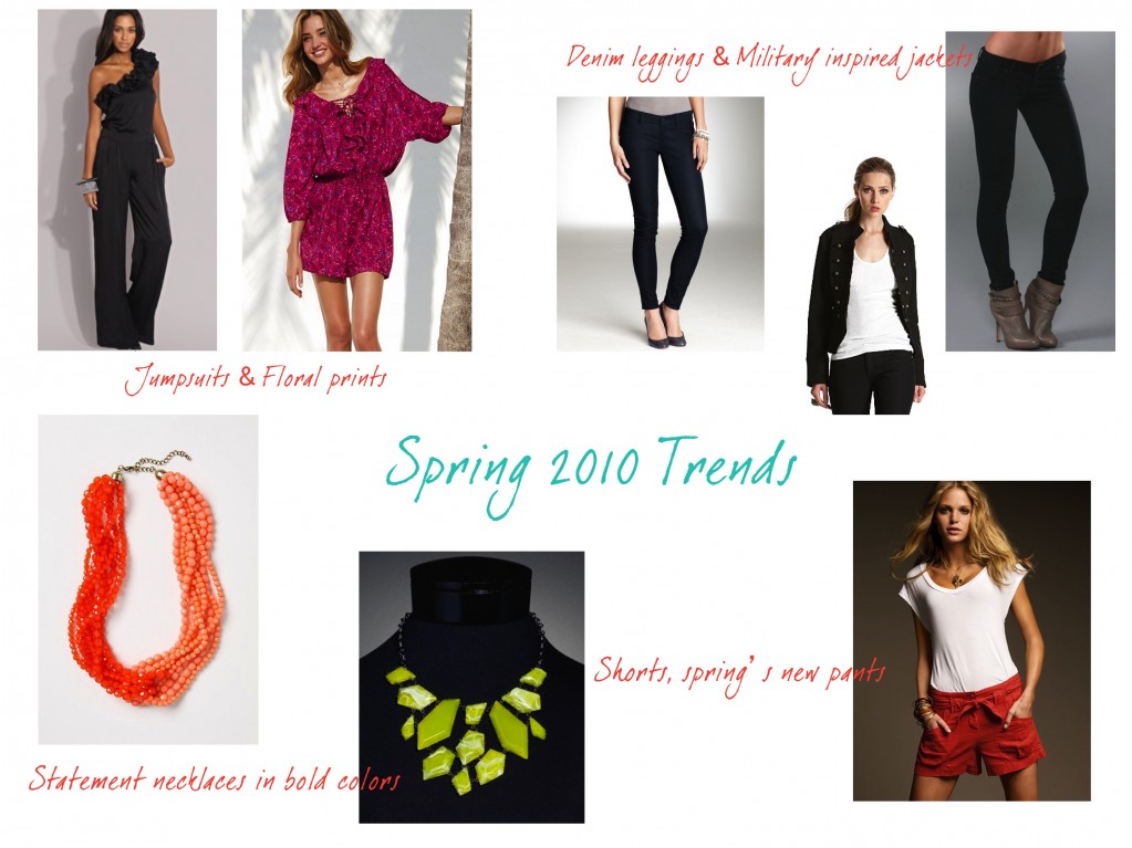 A: There were a lot of trends that came down the Spring 2010 runways. Below are just a few to incorporate into your closet this spring.
